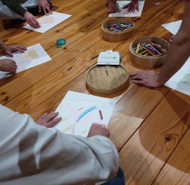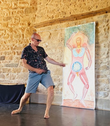J'ai particulièrement apprécié l'alternance souple entre des moments d'échange de vive voix, des temps de mouvement, de dessin, d'écriture. J'ai retrouvé une unité qui me faisait défaut depuis longtemps ! J'ai la sensation d'avancer, aujourd'hui, avec tout mon être ; je ne ressens plus de décalage majeur de rythme entre ma tête et mon corps. Je crois pouvoir dire que j'ai acquis une conscience accrue de mes limites, notamment physiques, sans pour autant avoir la sensation que ces limites sont des freins, bien au contraire. Elles sont. Et c'est avec elle comme vigies que je construis ce qui vient."